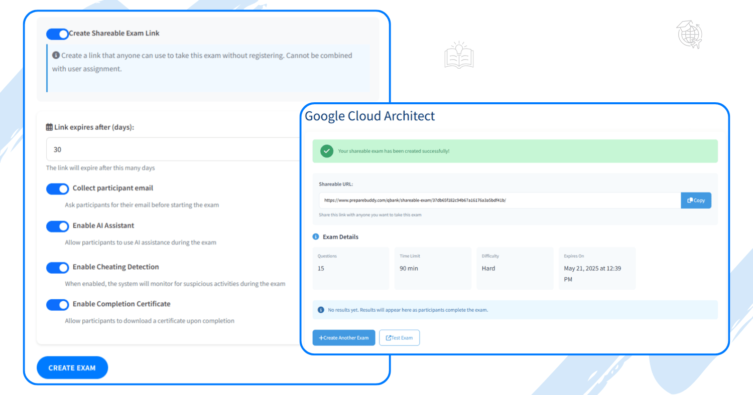 Need to quickly set up an exam for your peers, students, or team without requiring them to sign up? PrepareBuddy’s Shareable Exams feature makes it incredibly simple. Whether you’re teaching a class, running a training session, or just want to challenge your friends, this guide will walk you through the entire process. You don’t need technical know-how—just a few clicks, and your exam is live and ready.