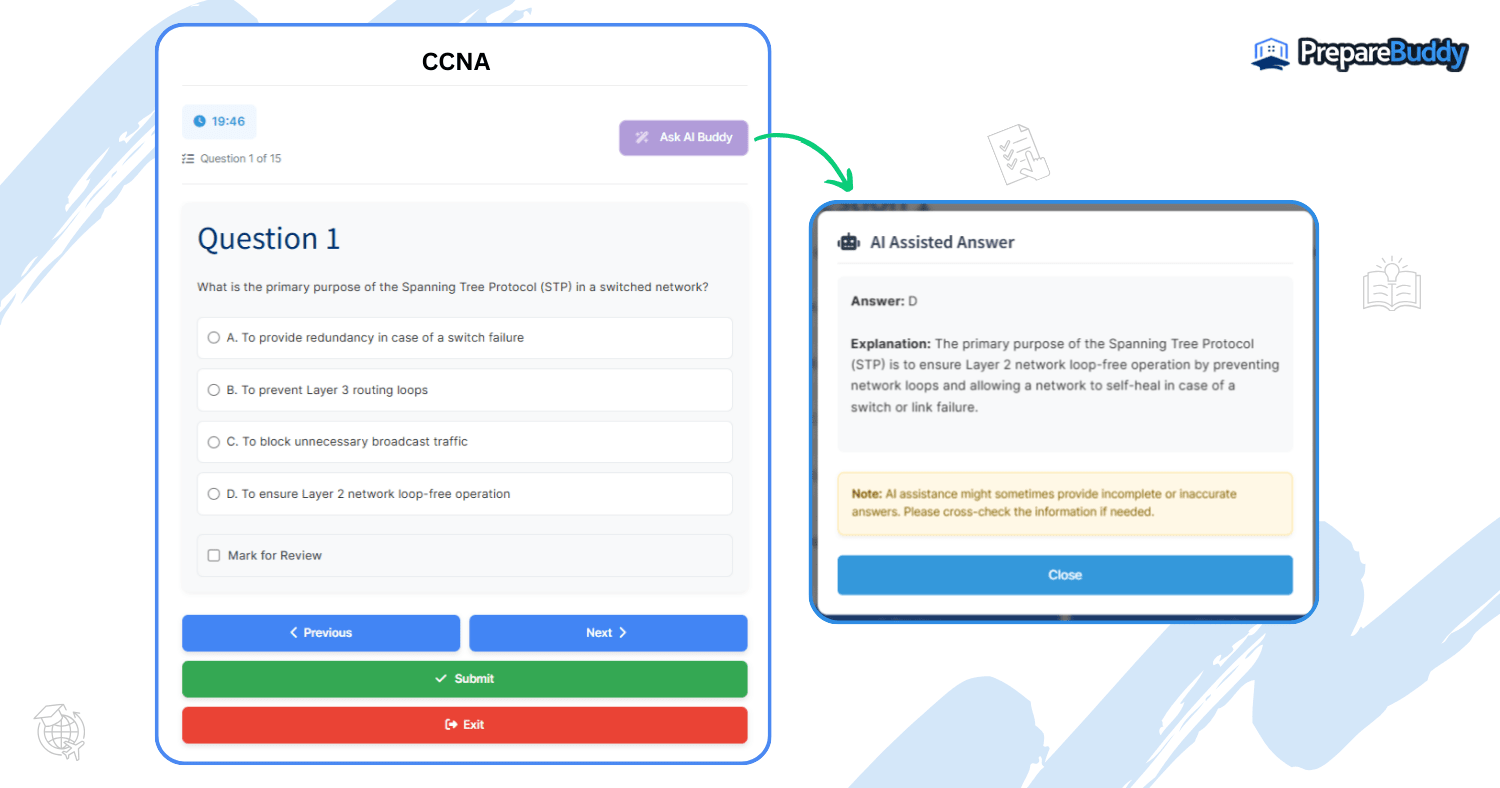 What shocked me was how accurate the AI-generated questions were. I didn’t expect much—but many mirrored what I saw on exam day. Plus, their AI Buddy gave me hints when I was stuck.