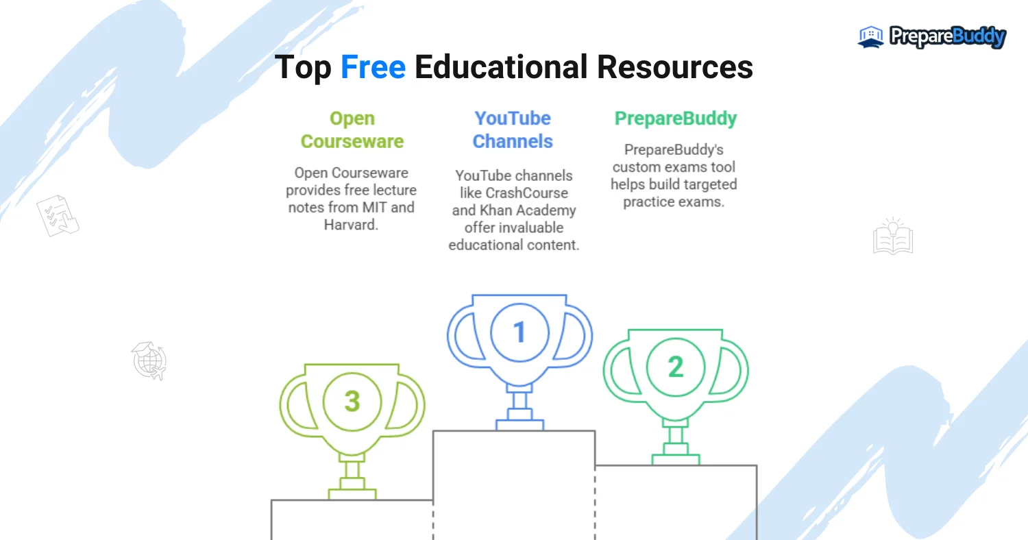 - YouTube, PrepareBuddy, Reddit, and MIT OpenCourseWare are your friends