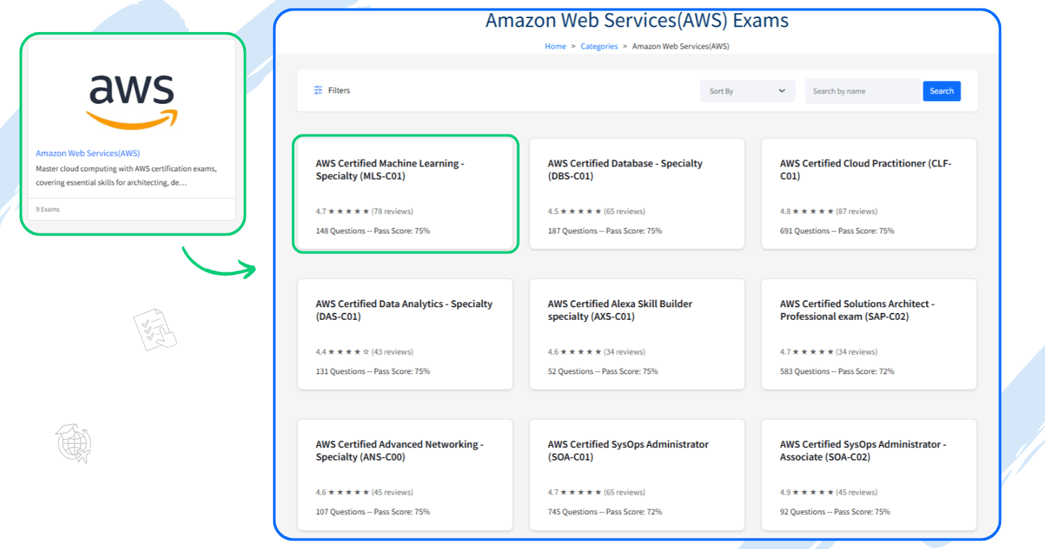 Let’s say you’re preparing for Amazon Web Services (AWS). Click on the AWS category page.